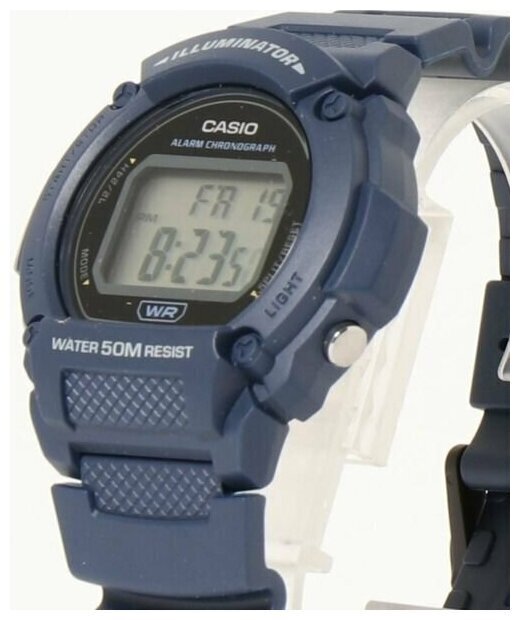 Мужские электронные наручные часы со светодиодной подсветкой и 7-летней батареей. Японская компания «Casio» известна созданием портативной электронной и вычислительной техники. В производстве часов «Casio» славится надежным качеством часовых механизмов, производимых, в основном, в Японии, разнообразием встроенных функций, а также широким ассортиментом с четко обозначенными модельными рядами, помогающими покупателю выбрать нужные часы. Все модели объединяет высокая точность, бесперебойная работа механизма, широкий функционал, а также стильный и современный модный дизайн. Тип механизма: кварцевый. Тип батареи: от батарейки. Точность хода: +/-30 секунд в месяц. Способ отображения времени: электронный (цифры). Дисплей защищен пластиковым (акриловым, органическим) стеклом. Оргстекло обладает высокой ударопрочностью. Корпус изготовлен из пластика. Пластик имеет легкий вес, не боится влаги и обладает прочностью. Браслет изготовлен из полимерного материала. Каучук обладает гибкостью, прочностью, гипоаллергенностью, имеет легкий вес, не боится влаги и царапин. Классическая регулируемая застежка с пряжкой. Светодиодная подсветка. Циферблат освещается при помощи светодиода. Цвет подсветки: оранжевый. 12/24-х часовой формат времени. Секундомер с точностью показаний 1/100 с и временем измерения 1 ч. Будильник с ежечасным сигналом. Ежедневный сигнал, ежечасный сигнал. Ежедневный сигнал звучит каждый день в установленное вами время. Число показывает, сколько ежедневных сигналов имеется. Функция ежечасного сигнала обеспечивает подачу часами звукового сигнала при наступлении каждого нового часа. Автоматический календарь (число, день недели). Водонепроницаемость WR 50 (5 bar) - 5 АТМ. Водозащита в часах выдерживает попадание брызг, мытье рук, капли дождя, легкий душ. Батарея рассчитана на 7 лет. Страна производитель: Япония. Гарантия: 2 года.