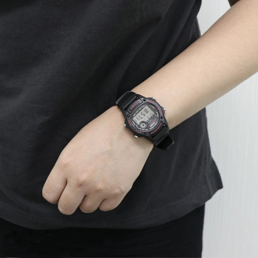 Мужские кварцевые наручные часы с цифровым отображением времени. Серия Casio Collection Standard Digital. Циферблат подсвечивается светодиодом с функцией послесвечения. Цвет подсветки оранжевый. 12-ти и 24-х часовой формат отображения времени. Секундомер с точностью показаний 1/100 с (до 1 ч) и 1 с (после 1 ч) и временем измерения 24часа. Таймер обратного отсчета от 1минуты до 24часов с автоповтором. Ежедневный будильник, ежечасный сигнал. Второй часовой пояс (отображение времени двух часовых поясов одновременно). Автоматический календарь до 2099 года. Круглый корпус из полимерного пластика чёрного цвета. Размеры корпуса 36,6мм на 43 мм, толщина 10,9 мм. Выпуклое пластиковое стекло. Чёрный ремешок из биопластика (изготавливается из возобновляемых органических ресурсов) с классической застежкой buckle. Батарейка рассчитана на 3 года. Водонепроницаемость WR50 (мытьё рук, дождь). Вес около 27 г.