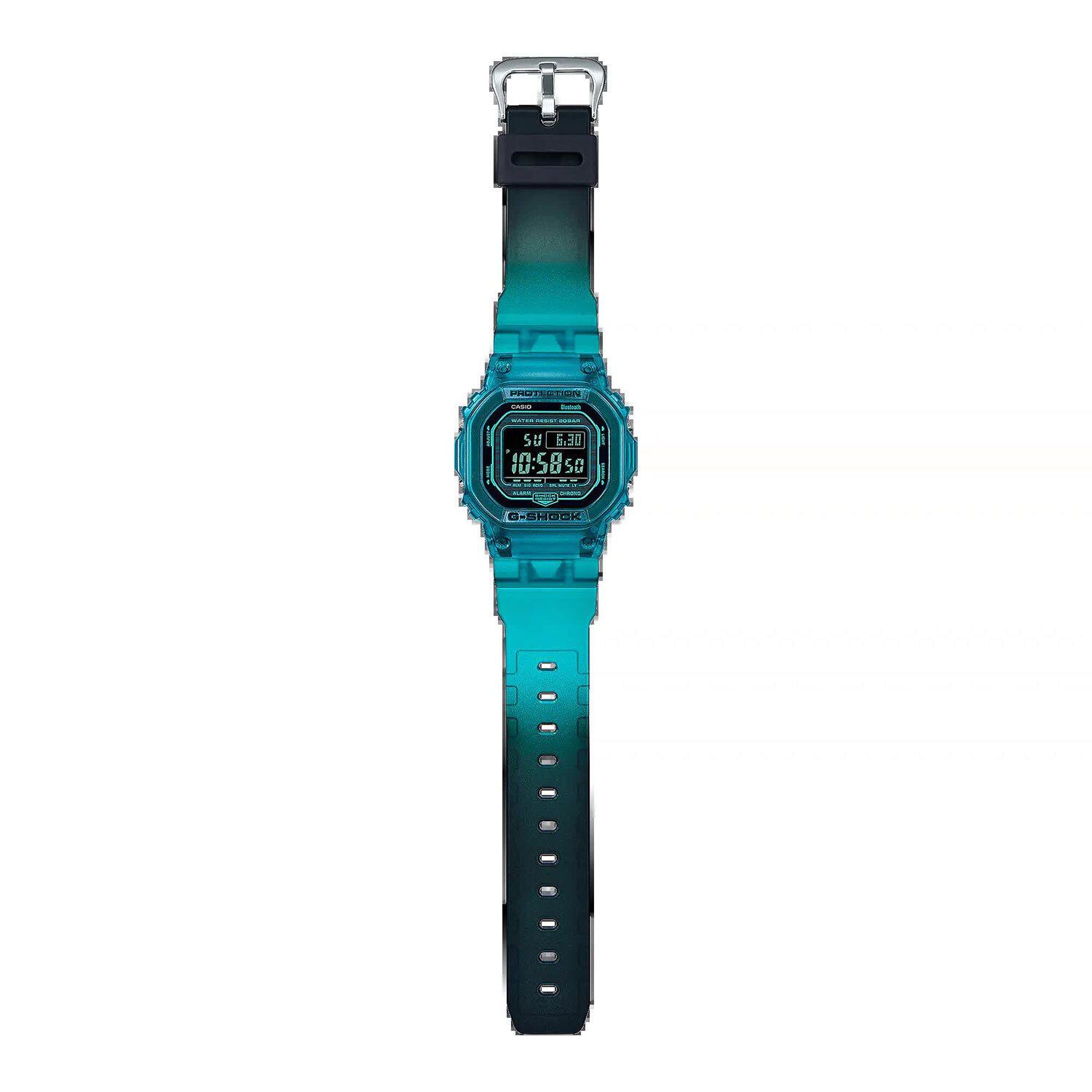 Мужские электронные часы. Часы оснащены технологией Bluetooth. Если часы подключены к смартфону, время устанавливается автоматически и отображается текущее время. Сверхмощная автоматическая подсветка LED. Функция мирового времени. Черный циферблат с голубыми элементами. Секундомер с точностью показаний 1/100 секунды и пределом измерения 24 часа. Таймер - время можно предварительно настроить от 1 секунды и до 100 часов. Часы могут затем автоматически начать отсчет в обратную сторону в установленное время. Идеальное решение для людей, которым необходимо ежедневно принимать лекарства или выполнять промежуточные упражнения (тренировки). 12/24х часовой формат времени. 5 ежедневных будильников. Включение/выключение звука кнопок. Функция поиска телефона. Многоязычность. Ежечасный сигнал. Автоматический календарь. Ударопрочная конструкция защищает от ударов и вибрации. Корпус выполнен из полимерного пластика голубого цвета. Размер корпуса составляет 42,8 x 48,9 x 13,4 мм. Сине-голубой ремешок из полимерного материала, стандартная застежка. Прочное минеральное стекло устойчивое к мелким механическим повреждениям. Водостойкость WR 200 (погружение с аквалангом). Вес примерно 55 гр.