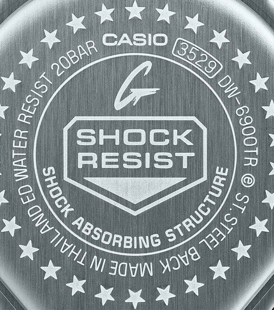 Мужские кварцевые электронные часы. Коллекция G-Shock limited. Серия посвящена 30-летию культовых G-Shock DW-6900. Противоударный корпус защищает механизм часов от ударов и вибрации. Светодиодная подсветка с функцией послесвечения. Gри активации подсветки появляется надпись «Since 1995». Световой сигнал (LED-индикатор) - светодиодная лампочка мигает при сигнале будильника, окончании таймера обратного отсчета или секундомера. Секундомер с точностью показаний 1/100 секунды (первый час), 1 секунда (через 1 час) и временем измерения 24 часа. Режимы измерения: прошедшее время, промежуточное время, два финишных результата. Таймер обратного отсчета от 1 секунды до 24 часов с автоповтором. 12-ти и 24-х часовой формат отображения времени. Многофункциональный будильник, ежедневный звуковой сигнал, индикация начала часа. Автоматический календарь до 2099 г. Круглый корпус из биопластика (изготавливается из возобновляемых органических ресурсов) матового жёлтого цвета. Размер корпуса 50 мм на 53,2 мм , толщина 18,7 мм. На стальной задней крышке выгравирован логотип "Shock Resist", окружённый 30 звёздами, символизирующими 30-летие линейки. Жёлтый матовый ремешок из биопластика (изготавливается из возобновляемых органических ресурсов) с классической застежкой buckle. Минеральное стекло устойчивое к мелким механическим повреждениям. Батарейка рассчитана на 5 лет. Водостойкость WR 200 (плавание и ныряние без акваланга). Вес примерно 67 г. Часы поставляются в оригинальной упаковке.