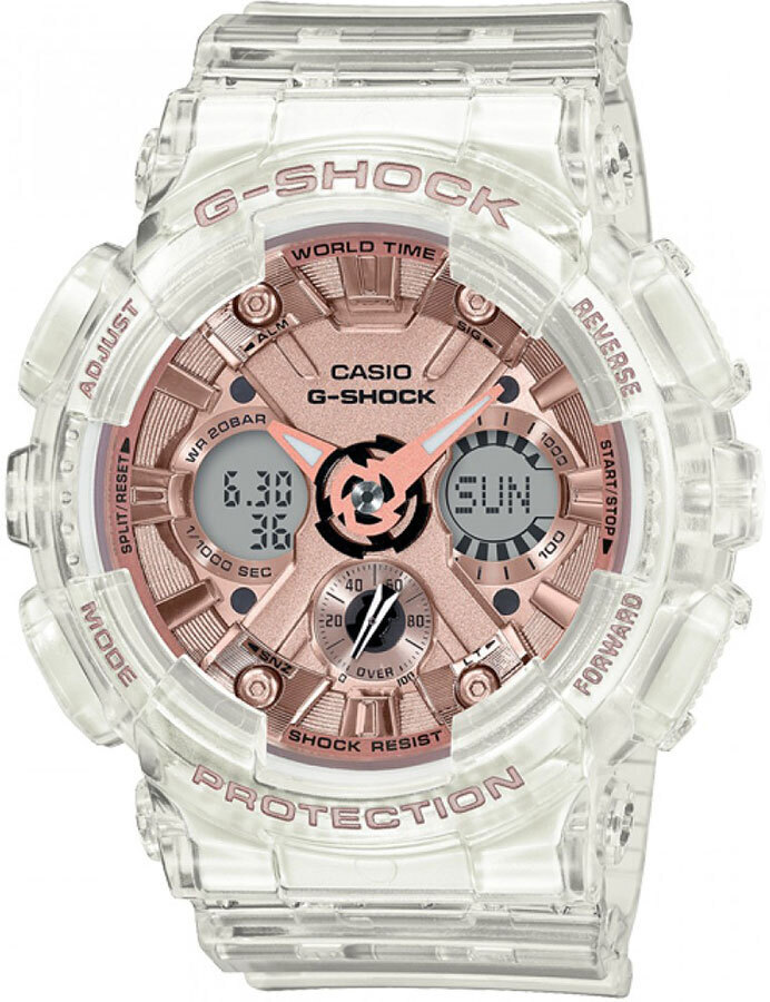 Многофункциональный кварцевый механизм, модуль 5518 с двойной цифро-аналоговой индикацией при помощи многофункциональных стрелок и на жидкокристаллическом дисплее. Точность хода с погрешностью не более +/-15 секунд в месяц. Элемент питания CR1220 рассчитан на 3 года работы. Функции: • Автоматическая светодиодная LED-подсветка срабатывает как при нажатии на кнопку, так и при подъеме/повороте руки. Настраиваемое время свечении 1,5 или 3 сек. • Отображение мирового времени в 29 часовых поясах с отображением 48 основных городов в них +GMT. • Секундомер с точностью показаний 1/1000 сек и максимальным временем измерения 100 часов. Режимы измерения – SPLIT и ADD. • Таймер обратного отсчета с автоповтором на 24 часа с точностью 1/1 секунды. • 5 ежедневных будильников, устанавливаемых на определенное время, один с функцией Snooze, ежечасный сигнал. • Вкл./Откл. звука кнопок. • Автоматическая подстройка положения стрелок при нажатии кнопок, таким образом, чтобы не закрывать дисплей и вспомогательные индикаторы. • Автоматический календарь, не требующий дополнительной корректировки, может быть настроен по 2099 год. • Отображение времени в 12/24 часовом формате. Уменьшенные габариты корпуса. Особая конструкция, помимо корпуса ударов и вибрации, защищает механизм-модуль часов от воздействия магнитного поля. Технические характеристики: • Комбинированный корпус выполнен из нерж. стали 316L и композитного полимерного материала. • Размеры корпуса 45,9 мм (по оси заводной головки) х 49,0 мм (по вертикали) х 15,8 мм (толщина). Вес приблизительно 55 грамма. • Минеральное стекло устойчивое к возникновению царапин. • Трехмерный циферблат с металлизированным покрытием, большие часовые метки с объемной 3Dструктурой. • Люминесцентный состав на стрелках и часовых метках с ярким послесвечением даже после кратковременного воздействия света. • Стальная задняя крышка из нерж. стали с гравировкой соединена с корпусом 4 винтами. • Водостойкость на глубине до 200 метров (20 АТМ). • Ремешок из полимерного материала, стандартная застежка с двойным шипом.