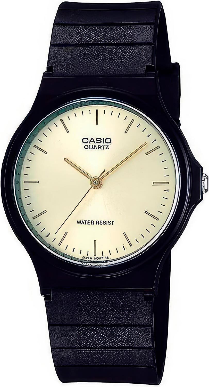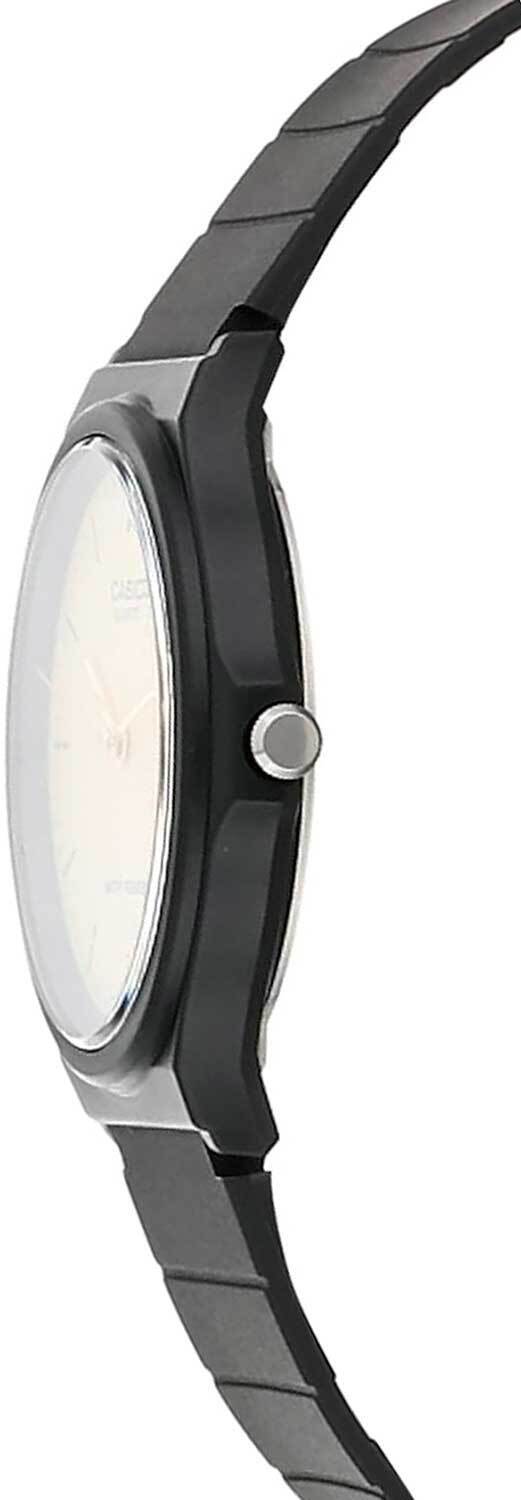 Кварцевые аналоговые наручные часы. Унисекс часы. Центральные часовая, минутная и секундная стрелки золотистого цвета. Золотистый циферблат с часовыми метками в виде штрихов золотистого цвета выполнен по технологии Sunray (солнечные лучи). Круглый корпус из чёрного биопластика (изготавливается из возобновляемых органических ресурсов). Габаритные размеры корпуса 33,8 мм на 38,8 мм, толщина 7,8 мм. Пластиковое стекло. Переводная головка с защитой. Чёрный пластиковый ремешок с классической застёжкой buckle. Батарейка рассчитана на 3 года. Стальная задняя крышка. Водозащищенность 30WR (защита от брызг). Вес около 20 г
