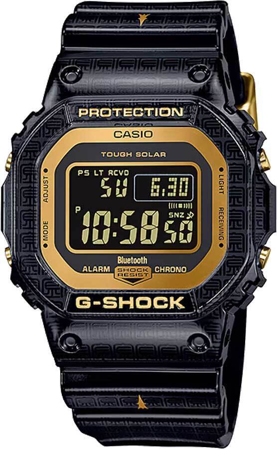 Кварцевые электронные наручные часы. Унисекс. Серия Casio G-Shock The Savage Five. Серия Savage Five с мотивами дизайна из «Записей трех королевств». Художник Jahan Loh (Джахан Лох) разработал эту модель на основе тем знаменитых Пяти элитных генералов, фигурирующих в истории Китая (Ма Чао, Чжао Юнь, Гуань Юй, Чжан Фэй и Хуан Чжун), а также пяти элементов (вода, дерево, металл, земля и огонь) и пяти главных качеств по версии китайской философии (доброжелательность, праведность, порядочность, мудрость и верность). Ударопрочный корпус защищает механизм часов от ударов и вибрации. Часы оснащены беспроводной технологией Bluetooth® со сверхнизким потреблением энергии для синхронизации со смартфоном. При подключении к смартфону часы корректируют текущее время, настраивают будильник, а также копируют настройки мирового времени. Питание от солнечной энергии Tough Solar - источником питания служит светочувствительная панель и аккумулятор, подзаряжаемый при попадании солнечного света на дисплей часов. Функция автоматического сохранения энергии (в темноте дисплей гаснет для экономии энергии). Индикатор уровня заряда батареи. Время работы без подзарядки в обычном режиме до 10 месяцев, в режиме энергосбережения до 22 месяцев. Полностью автоматическая светодиодная подсветка — при недостаточном освещении поворот руки включает подсветку дисплея, выбираемая продолжительность подсветки 2 или 4 секунды, послесвечение. Радиокоррекция времени с помощью технологии Multi Band 6 на территории почти всей Европы, США, Японии и Китая. Мировое время 39 часовыхпоясов (39 городов), всемирное координированное время (UTC), автоматическое переключение на летнее время (DST), быстрое переключение местного на мировое время. Секундомер с точностью измерения 1/100 секунды (первые 60 минут) и 1 секунда (через 60 минут) и временем измерения 24 часа. Режимы измерения: прошедшее время, промежуточное время, два финишных результата. Таймер обратного отсчета от 1 минуты до 24 часов. Полетный журнал — возможность сохранения и просмотра информации о текущем местоположении, времени и дате записи, которые отображаются на карте в приложении G-SHOCK Connected при подключении часов к смартфону. 5 ежедневных будильников, один с функцией повтора сигнала, ежечасный сигнал. Автоматический календарь до 2099 года, выбор языка отображения дня недели (6 языков). 12/24х часовой формат отображения времени. Функция поиска телефона. Прямоугольный корпус из полимерного пластика чёрного цвета. Размкры корпуса 42,8 мм на 48,9 мм , толщина 13,4 мм. Устойчивое к мелким механическим повреждениям минеральное стекло. Чёрный ремешок из полимерного пластика с классической застёжкой Buckle. Ремешок украшен китайскими иероглифами которые означают воду, дерево, металл, землю и огонь. Стальная задняя украшена выгравированными иероглифами, которые означают доброжелательность, праведность, приличие, мудрость и верность. Водонепроницаемость 200 WR (плавание и ныряние без акваланга). Вес около 53 г. Часы укомплектованы специальной дизаренейской упаковкой.