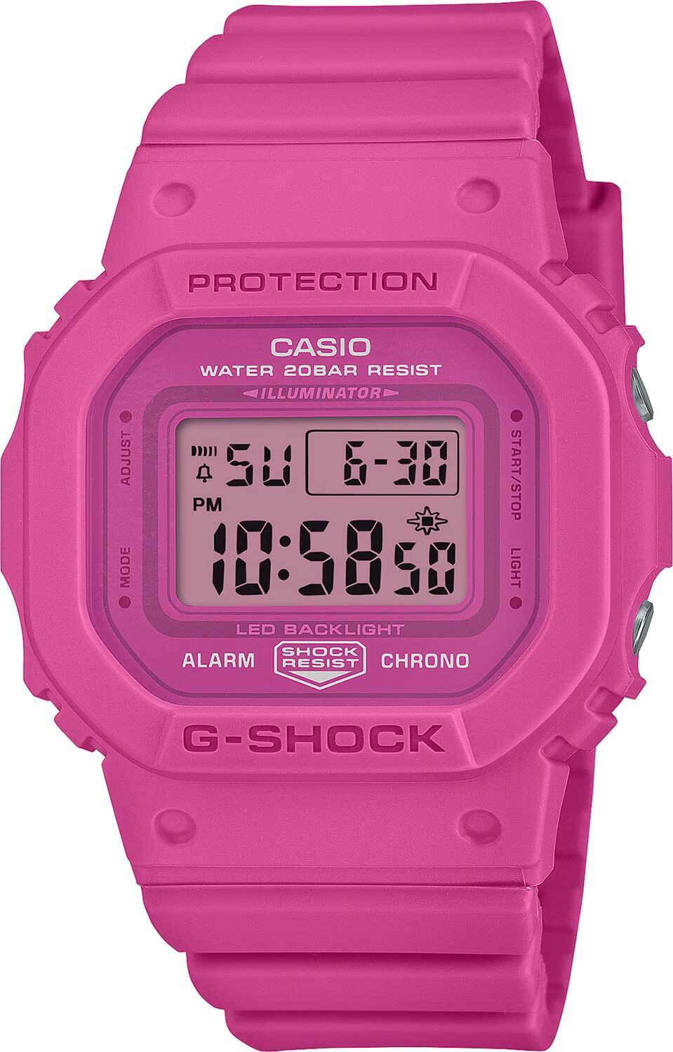 Женские кварцевые электронные наручные часы. Серия Casio G-Shock x Pink Ribbon. Модель создана совместно с фондом Pink Ribbon (Розовая лента), который занимается борьбой с раком груди. Дизайн часов вдохновлен заботой об окружающей среде. Корпус и ремешок выполнены из биопластика, который изготавливается из возобновляемых органических ресурсов. Предполагается, что этот материал поможет ограничить выбросы диоксида углерода в атмосферу и тем самым снизить вредное воздействие на окружающую среду. Противоударный корпус защищает механизм часов от ударов и вибрации. Дисплей подсвечивается ярким светодиодом с функцией послесвечения. Световая индикация сигнала (LED-индикатор) - светодиодная лампочка мигает при сигнале будильника, окончании таймера обратного отсчета или секундомера. 12-ти и 24-х часовой формат отображения времени. Секундомер с точностью измерения 1/100 секунды (первый час), 1 секунда (через 1 час) и временем измерения 24 часа. Режимы измерения: прошедшее время, промежуточное время, два финишных результата. Таймер обратного отсчета от 1 секунды до 24 часов (с интервалом в 1 секунду, с интервалом в 1 минуту и с интервалом в 1 час) с автоповтором. Многофункциональный будильник, ежечасный сигнал. Автоматический календарь до 2099 года. Корпус из биопластика (изготавливается из возобновляемых органических ресурсов) розового цвета. Размеры корпуса 40,5 мм на 45,7мм, толщина 11,9мм. Устойчивое к мелким механическим повреждениям минеральное стекло. Розовый ремешок из биопластика (изготавливается из возобновляемых органических ресурсов) с классической застежкой Buckle. Батарейка рассчитана на 3 года. Водонепроницаемость 200WR (плавание и ныряние без акваланга). Вес около 42 г.